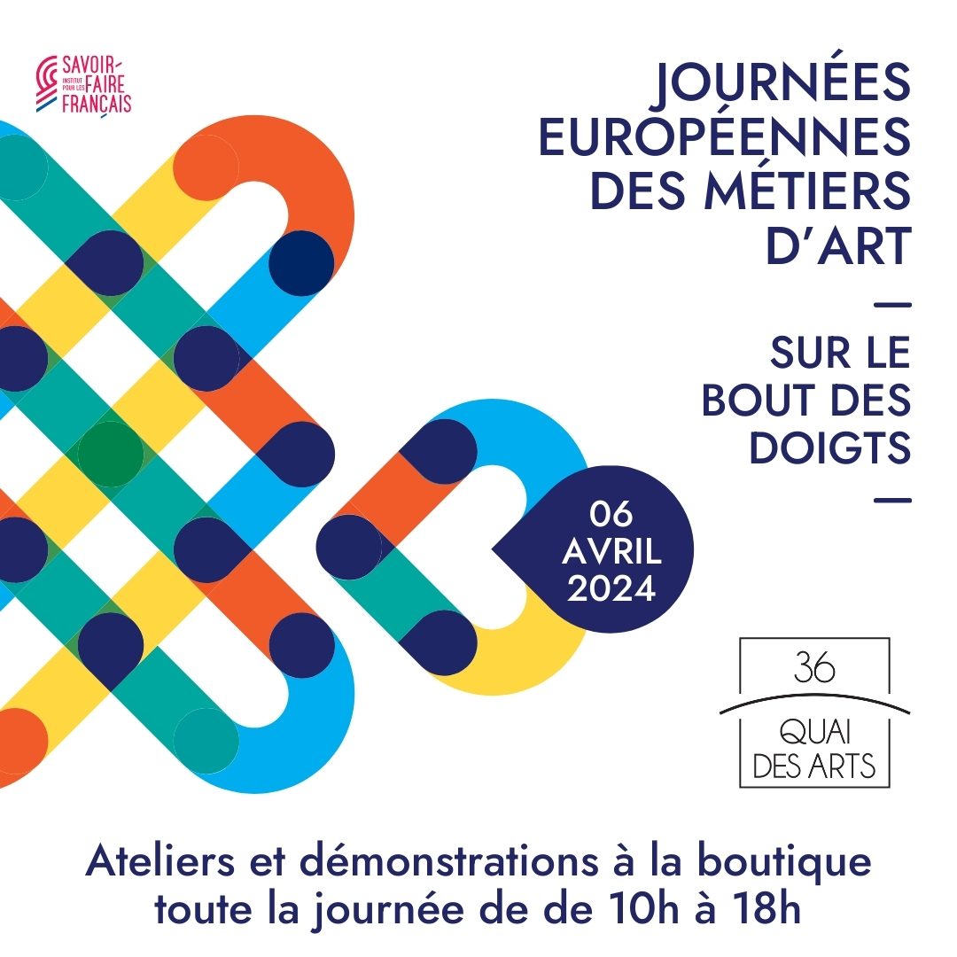 À l’occasion des Journées Européennes des Métiers d’Art (JEMA), le 36 Quai des Arts, la boutique Métiers d’Art de Niort, organise une journée entière dédiée à la rencontre avec les professionnels des métiers d’art. Nous lançons une invitation chaleureuse au grand public le 6 Avril 2024 afin d’explorer le talent exceptionnel des femmes et des hommes qui œuvrent dans les métiers d’art et contribuent au patrimoine vivant.