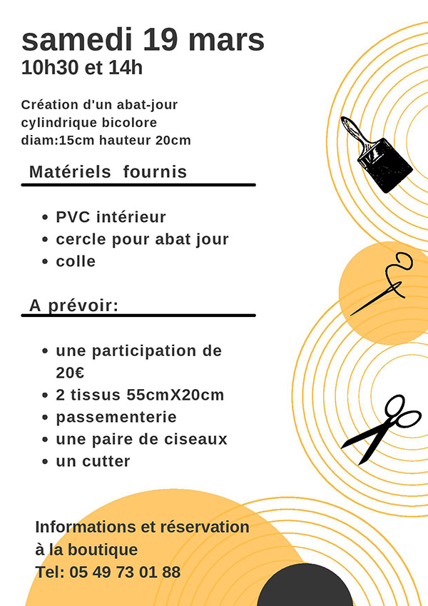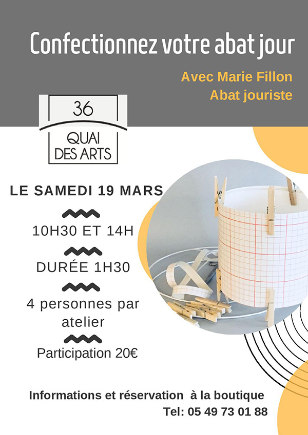 Samedi 19 Mars rendez-vous avec Marie Fillon abat- jouriste pour fabriquer un petit abat- jour.
